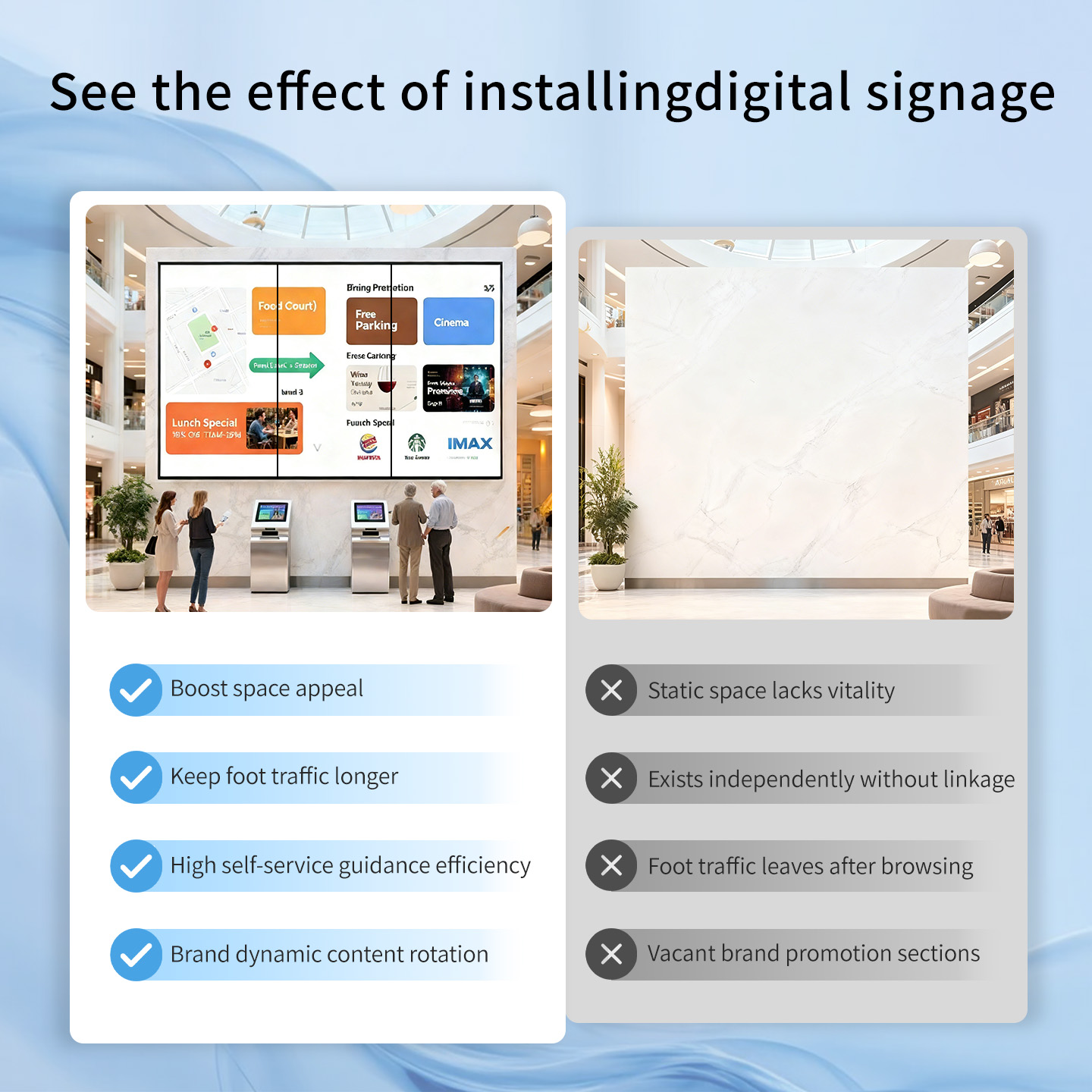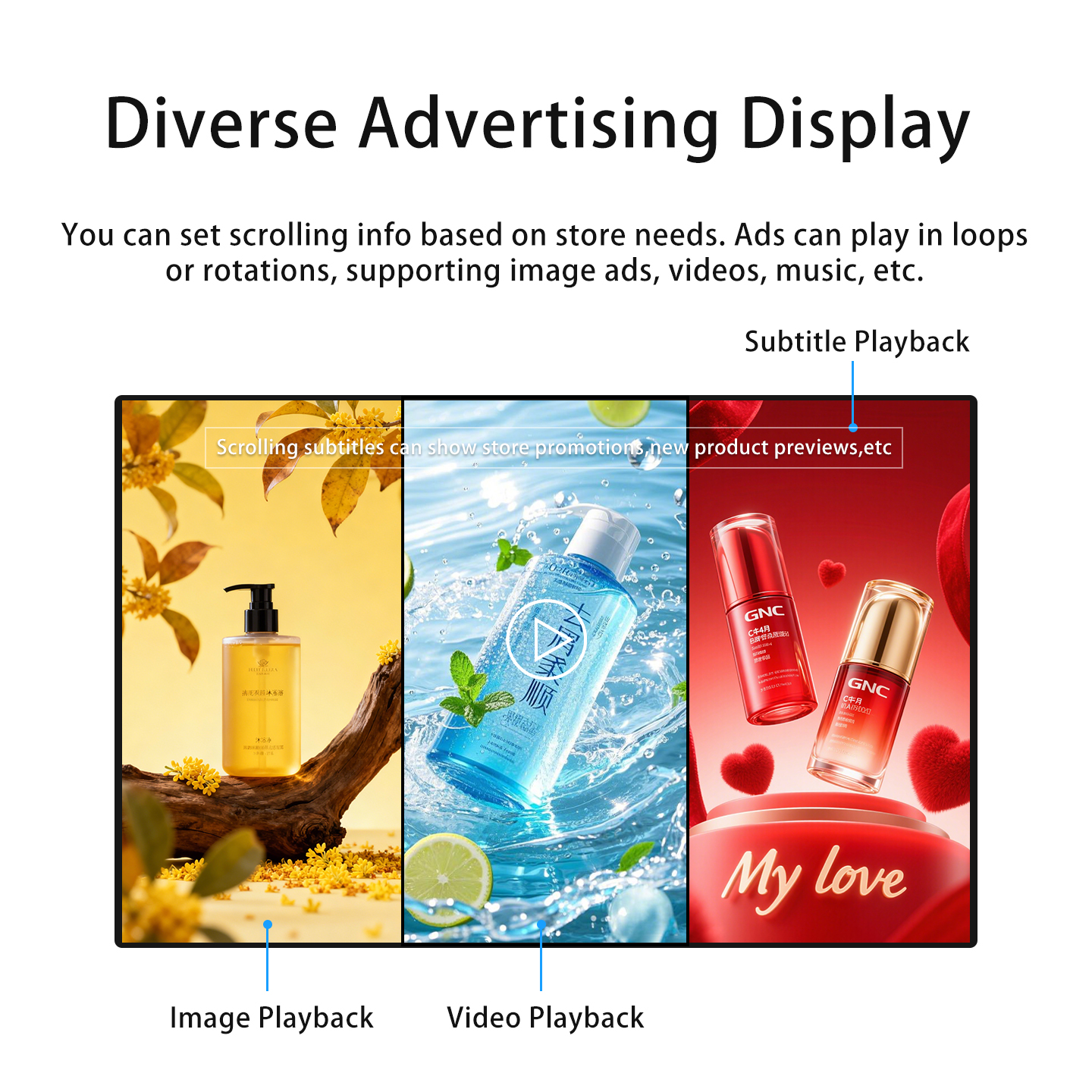 VeeLuame Advertising Display System offers 4K UHD clarity, ultra-narrow 10.4mm bezel, and dual PC/mobile control. Applied in malls, stores, exhibitions, it provides one-stop service (hardware+software+material customization) with annual electricity cost of ~$382—cost-effective and easy to use.